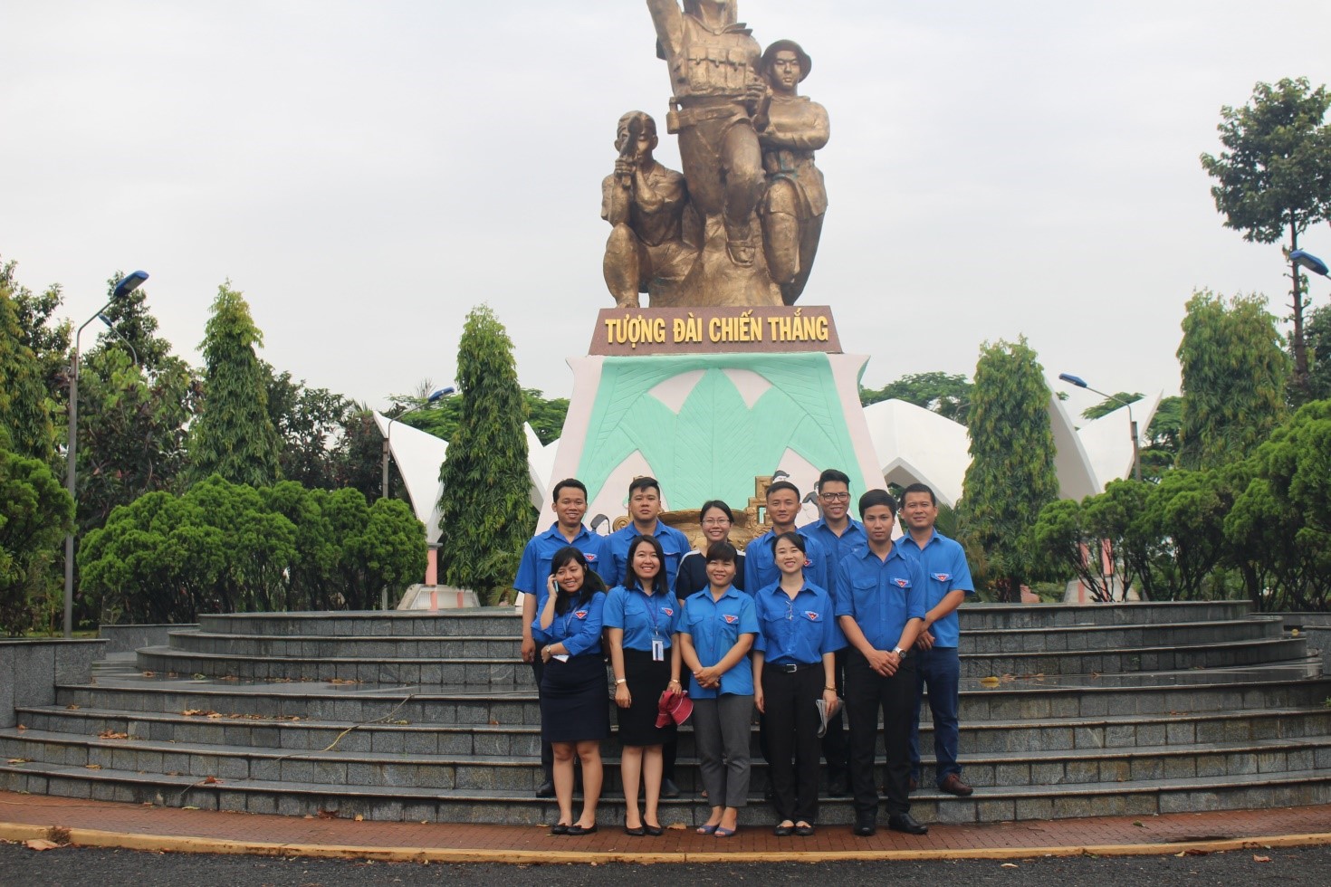Chi đoàn Văn phòng BQL KCNC chụp hình lưu niệm tại Di tích “Bưng 6 xã”