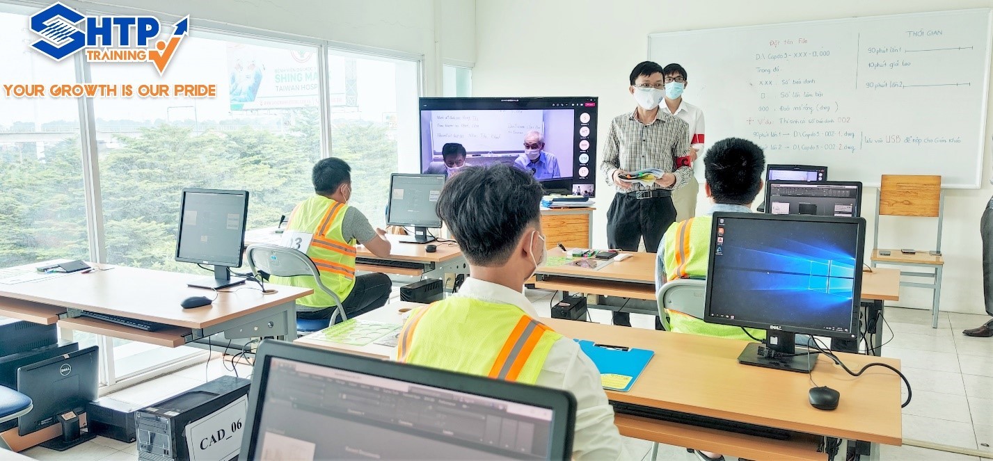 Homepage News SHTP News 02/11/2021 Training / Pilot evaluation on CAD drawing skills according to Japanese standards (SHTP Training) - In order to support laborers in Vietnam to perfect their CAD design skills according to Japanese standards, The Training Center of Saigon Hi-tech Park in collaboration with the Japanese Ministry of Health, Labor and Welfare organized a pilot event to evaluate vocational skills "Drawing 3rd-level CAD designs according to Japanese standards" from October 25, 2021 to October 29, 2021. Assessment of drawing presentation skills according to JIS (Japanese Industrial Standards) is a well-defined Japanese industrial standard used for industrial activities in Japan. The standardization process is coordinated by the Japan Industrial Standards Committee and published through the Japan Standards Association. Model design according to Japanese standards. Training skills to use AutoCAD proficiently will help employees have the ability to organize, manage and execute technical drawings in a scientific, efficient, fast, accurate manner and shorten the time to handle situations when drawing. Grasping the need to improve skills and train technical workers from Enterprises/Groups, at the same time, with the approval of the Department of Vocational Skills - General Department of Vocational Training, The Training Center of Saigon Hi-tech Park (SHTP Training) in collaboration with the Japanese Ministry of Health, Labor and Welfare organized a pilot event to evaluate vocational skills "Drawing 3rd-level CAD designs according to Japanese standards" from October 25, 2021 to October 29, 2021. Dr. Hoang The Ban – Expert of Saigon Hi-tech Park gave a speech at the event. In order to ensure the 5K message of the Ministry of Health, SHTP Training has piloted an organization for 10 Engineers/Technologists from Enterprises/Corporations inside and outside Saigon Hi-tech Park. The entire exam process of the candidates took place with online supervision and direct assessment of 15 experts trained by Japan (including 12 experts from Enterprises and Vocational Schools in Ho Chi Minh City and 03 experts participated online from Hanoi Industrial Vocational College). View of the practice exam room for AutoCAD drawing skills level 3. Candidates who pass the exam will receive a certificate issued by the Japanese Ministry of Health and Labor Welfare. After 5 days of implementation, the program has achieved remarkable milestones: + The first program on CAD was held in Ho Chi Minh City (The Training Center of Saigon High-tech Park is a trusted choice); + The first program on CAD with the participation of online assessment trainers (Hanoi Industrial Vocational College); + The first program in Ho Chi Minh City has an evaluator who is a visiting lecturer of SHTP Training and currently also working at an Enterprise (Khai Phuong Mechanical Co., Ltd); + The first program in Vietnam with 100% of candidates passing the theory exam of Vocational Skills according to Japanese standards (Exam questions are taken from the question bank of the Japanese Ministry of Health and Labor Welfare); + The program was held with online observation from Korean Enterprises (Hwacheon Machine Tool Vietnam Co., Ltd); Japanese enterprises (Toyooka Automation Company, Mitsubishi Electric Vietnam, SMC Vietnam, ...) Some pictures from the event: View of the theory exam of AutoCAD drawing skills level 3. Candidates perform the practical exam on AutoCAD software. SHTP Training 40 view