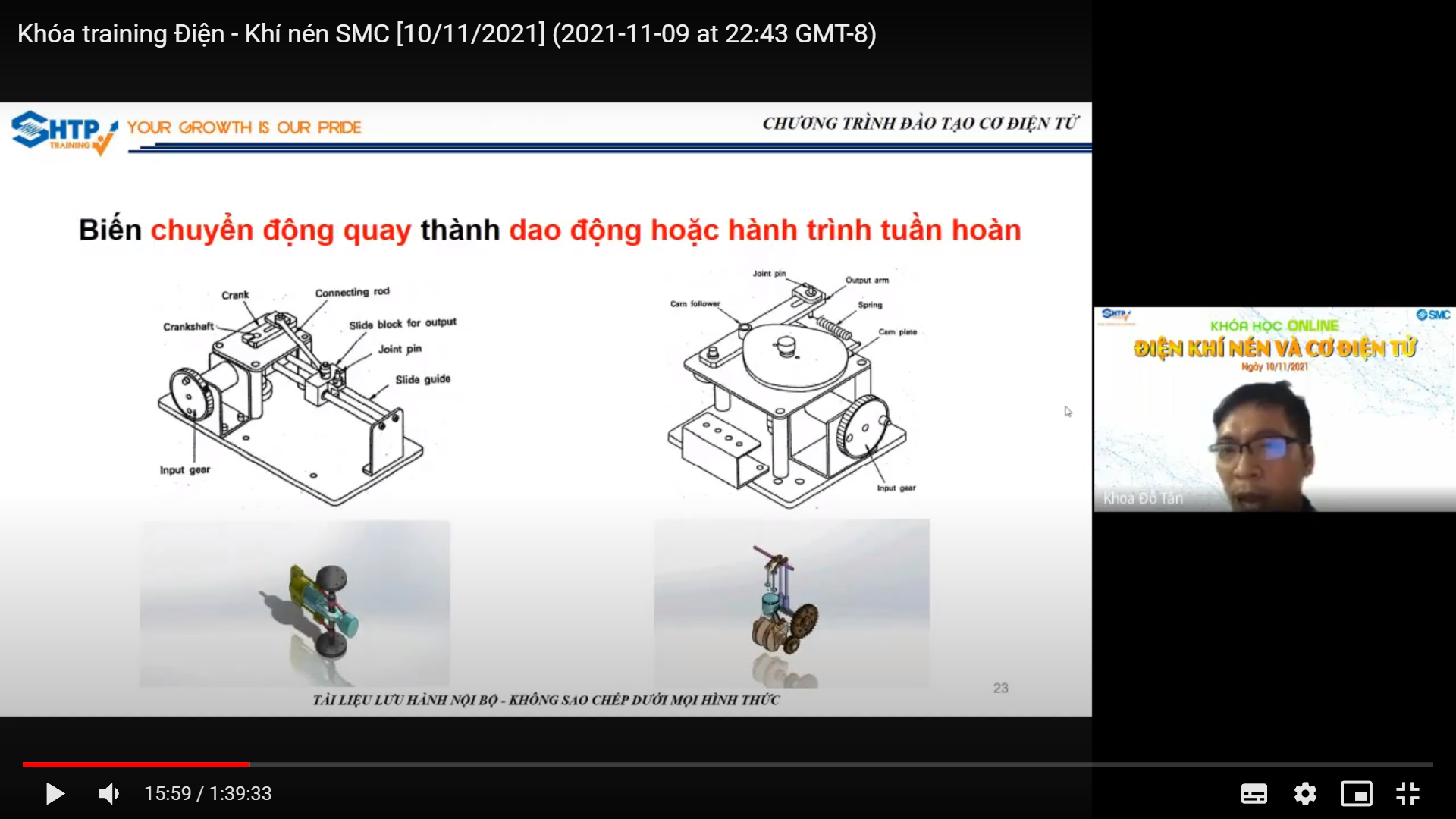 Homepage News SHTP News 07/12/2021 Training program "Electrical Pneumatics and Mechatronics" (SHTP Training) - The Training Center of Saigon Hi-tech Park (SHTP Training) cooperated with SMC Company to organize a training program for enterprises on the knowledge of "Pneumatics and Mechatronics". In the industrial revolution 4.0, Automation - Robotization technology has become a trend in all fields of modern industrial production. Currently, in modern production lines, robots are gradually replacing unskilled workers to increase productivity and improve product quality... In particular, processing technology in smart devices such as smartphones, smart-home, smart-city... is also forecasted to develop strongly in the future. Many enterprises in the Saigon Hi-tech Park such as Samsung, Intel, Jabil, Nidec, Nipro, Datalogic, ... have automated production lines of components and machines. Mechatronic engineering technology is an interdisciplinary field between electricity - electronics, mechanics, information technology and intelligent control algorithms. Training content to recognize group devices. Each application of mechatronics integrates all of the above factors to develop systems thinking in product design and development, and new technologies with outstanding features. Grasping the above trend, The Training Center of Saigon Hi-tech Park (SHTP Training) cooperated with SMC Company to organize a training program for enterprises on the knowledge of "Pneumatics and Mechatronics". Pictures of online training activities on Pneumatics – Mechatronics The training program took place online with the participation of 18 engineers/technicians from Yakult, Showa Gloves, Tantrasway, Mahima, ... The Training Center of Saigon Hi-tech Park will continue to accompany its partners in the following activities: Recruitment – On-demand training for enterprises inside and outside Saigon High-tech Park. SHTP Training 30 view