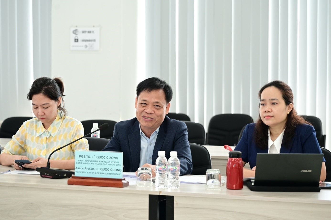 Tại buổi gặp gỡ, PGS.TS Lê Quốc Cường, Phó Trưởng ban Ban Quản lý Khu Công nghệ cao đã chào mừng đoàn và chia sẻ về hệ sinh thái khoa học công nghệ đang phát triển mạnh mẽ tại Khu Công nghệ cao, định hướng chiến lược về chuyển đổi kép: chuyển đổi số, chuyển đổi xanh tại Khu Công nghệ cao hướng đến mục tiêu phát thải ròng bằng 0 trước năm 2050 và dự kiến thành lập Quỹ đầu tư mạo hiểm công nghệ cao để hỗ trợ các công ty khởi nghiệp và các dự án giai đoạn đầu, đồng thời tạo ra nhiều cơ hội hơn cho các quan hệ đối tác đầu tư và mở rộng thị trường.